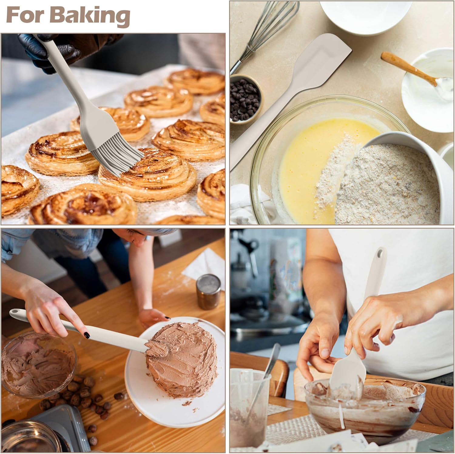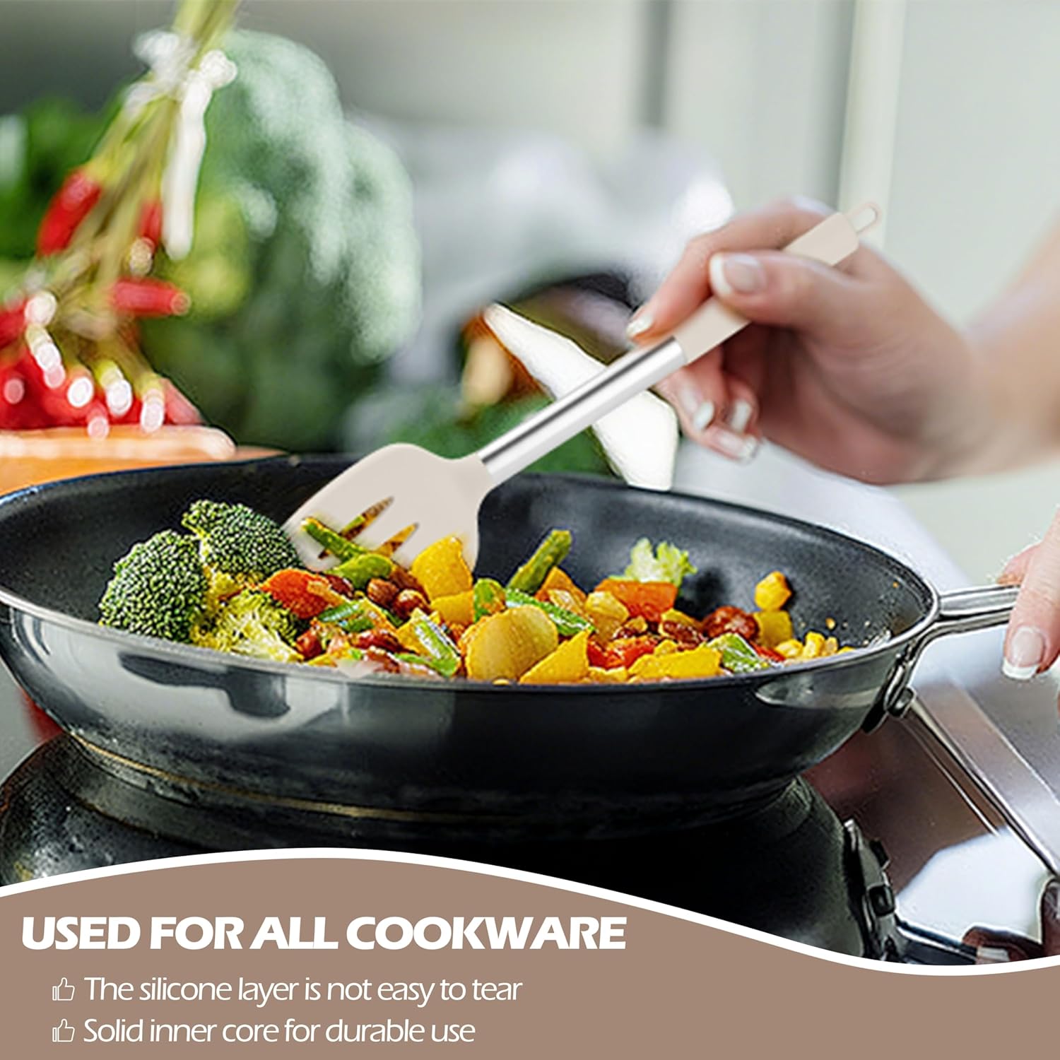 HEAT-RESISTANT AND NON-SCRATCH: This kitchen utensils set with soft silicone head, withstand high temperatures (up to 450°F), not easy to bend, melt, or wrap when cooking, Anti-scratch to protect the surface of non-stick pans and cookware, extend the life of all your kitchen pots and pans, could meets all you kitchen cooking demands for stirring, baking, frying, boiling etc