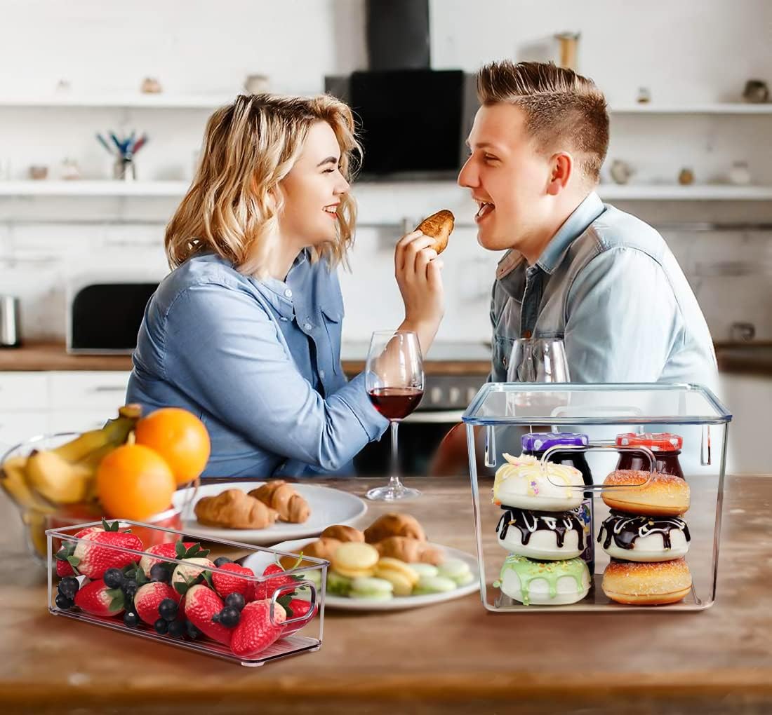 【Transparent without lids】 - The plastic transparent design bins allows you to find what you need easily and quickly, saving a lot of searching time and keeping things tidy. These clear fridge storage bins can be used in refrigerators, cabinets, pantries, bathrooms, bedrooms, offices, drawers, playrooms, kitchens and vanities, etc.