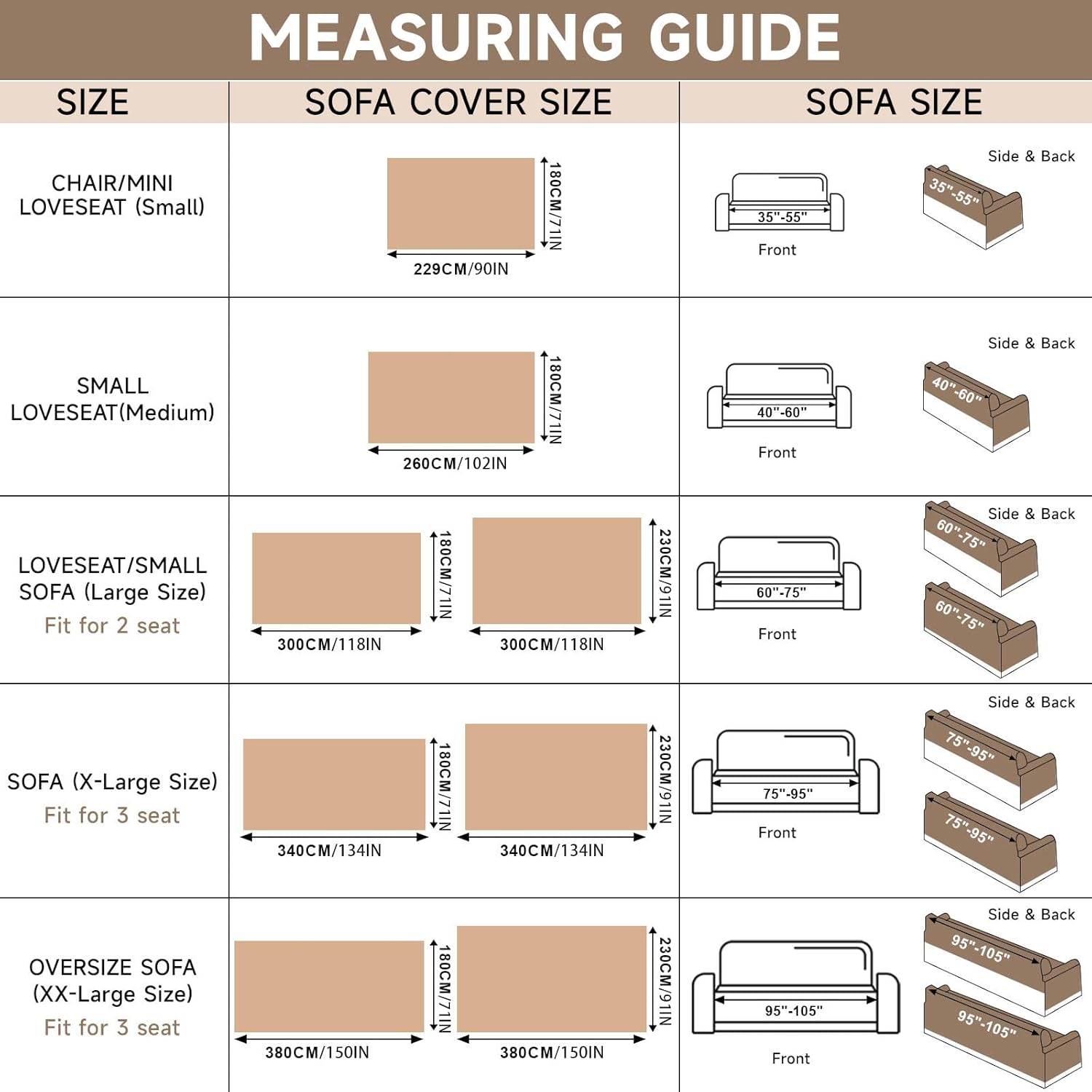 X-Large Size Detail: The XL couch cover for 3 cushion couch sofa is 71x134 inch and fit for sofa from 75" to 95" inch to provide a neat look. Please measure before purchasing, see measuring guide in photos.